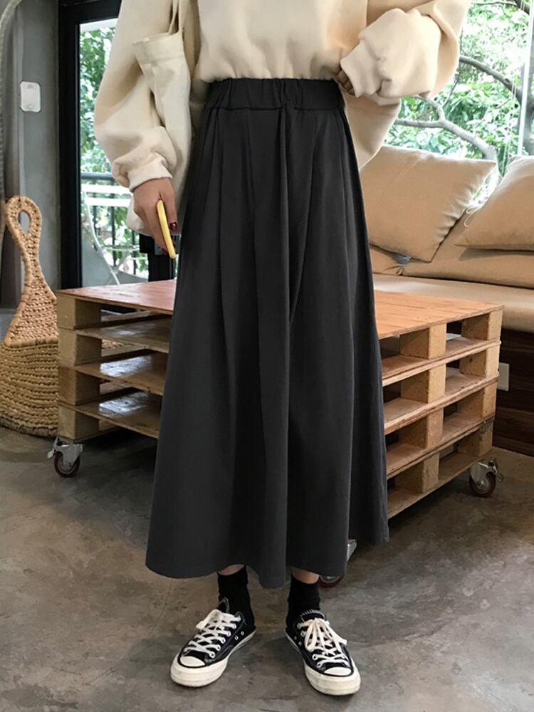 スカート ロングスカート フレア ハイウエスト シンプル 無地 大人カジュアル デイリー 春