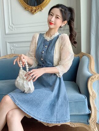 おしゃれでかわいいレースのデニムワンピース♪