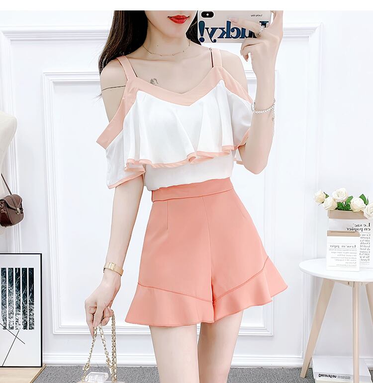 大人可愛いオフショルダーデザインのブラウスとショートパンツのセットです♪