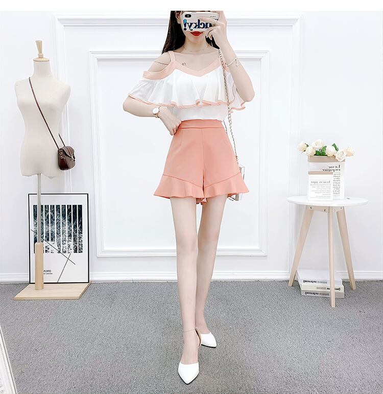 セットアップ ツーピース ブラウス 半袖 オフショルダー パンツ ショートパンツ ハイウエスト