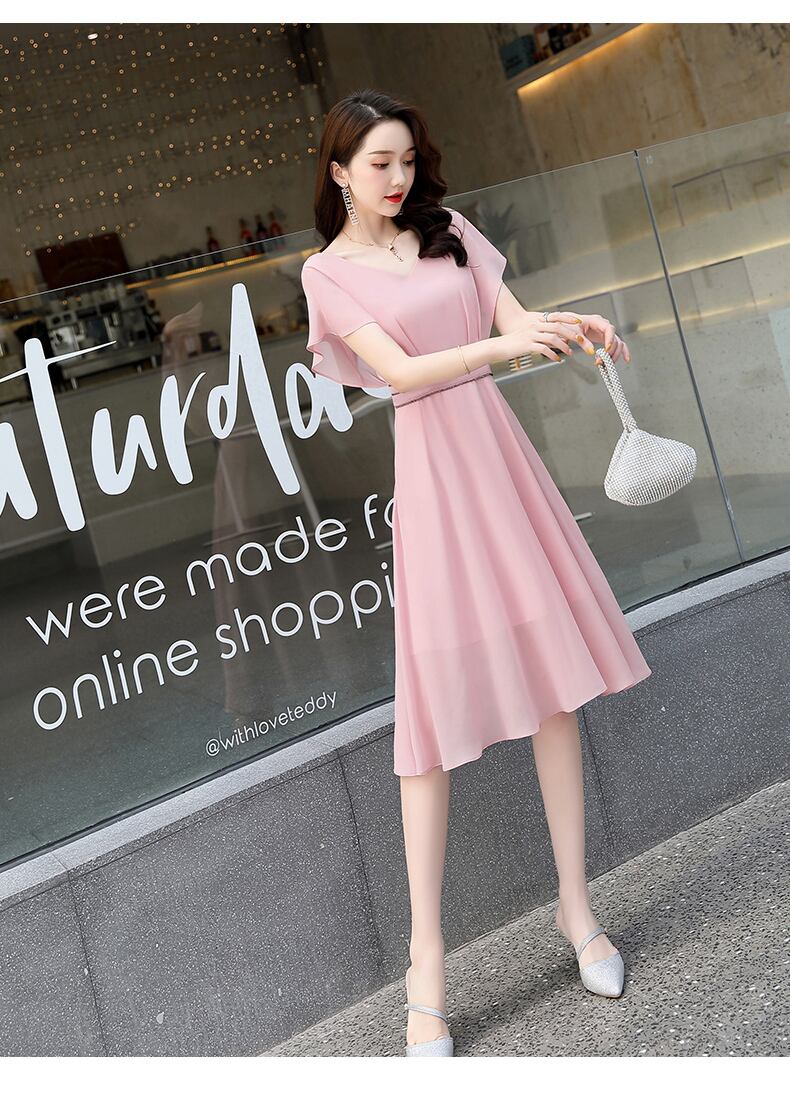 ワンピース シフォンワンピース 半袖 膝丈 フレア シースルー シンプル 無地 きれいめ お呼ばれ