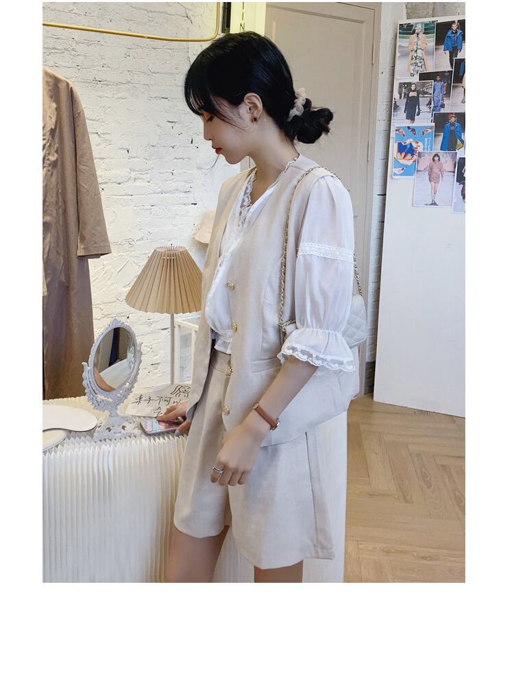 セットアップ スリーピース 半袖 ブラウス ベスト ショートパンツ 大人カジュアル デート 春 夏