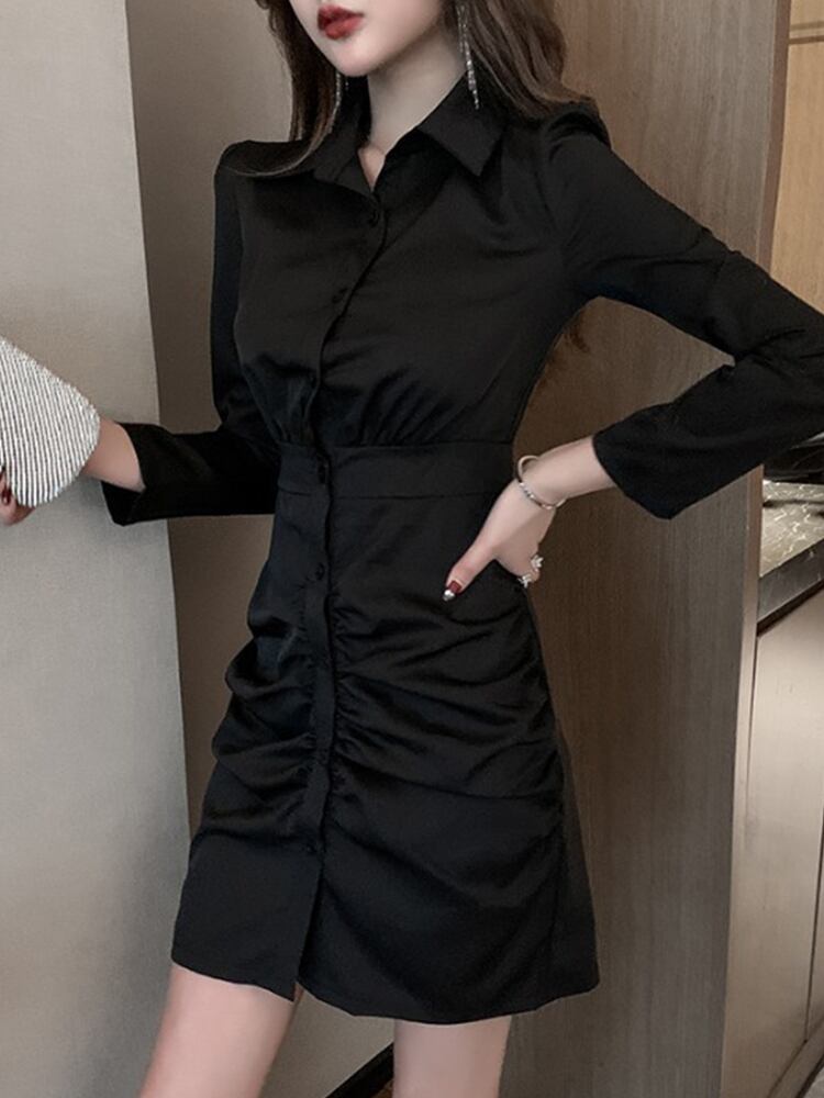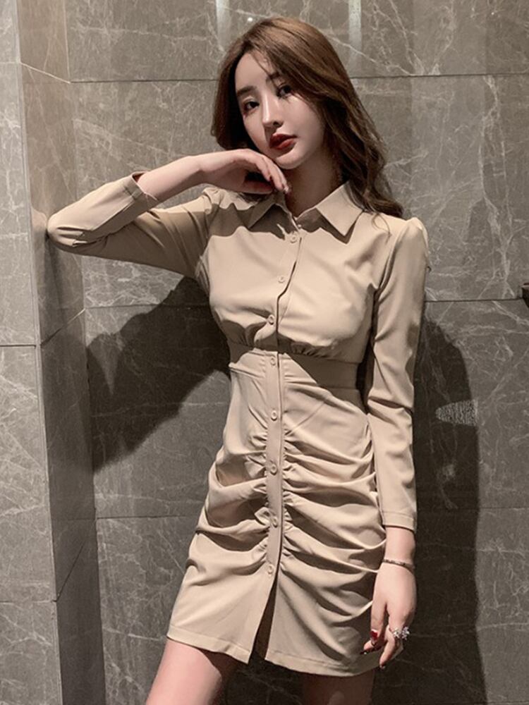 ワンピース シャツワンピース 長袖 ミニ丈 くびれデザイン シンプル 無地 大人カジュアル デート