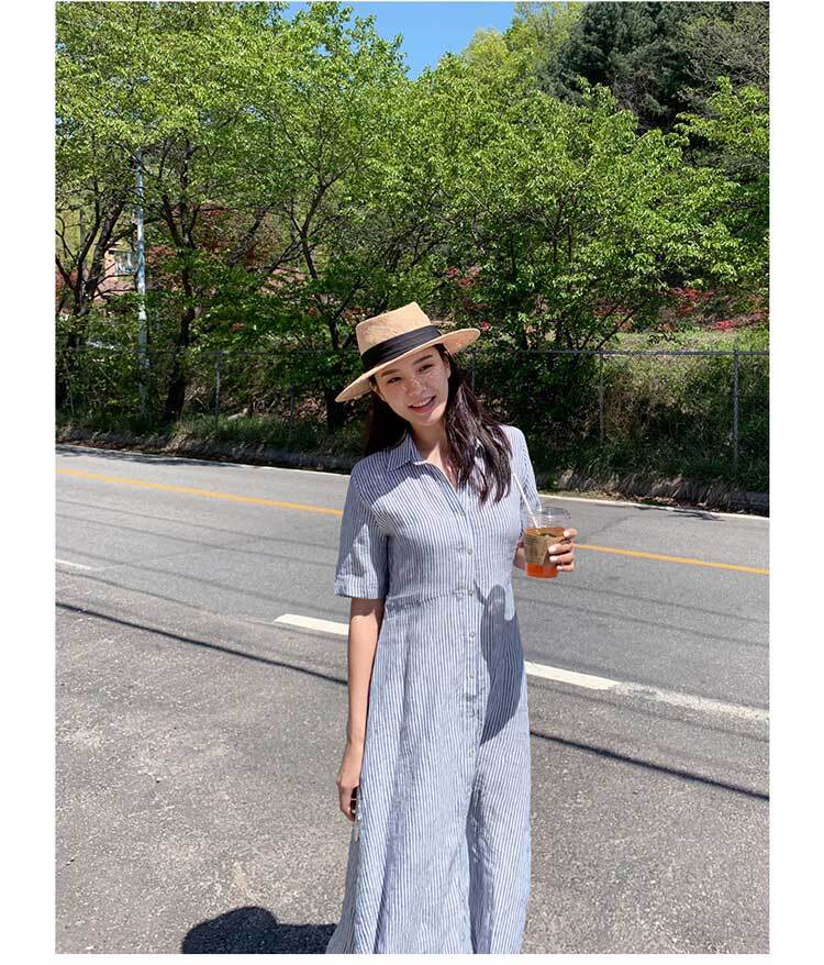 大人カジュアルなストライプ柄のミモレ丈ワンピースです♪