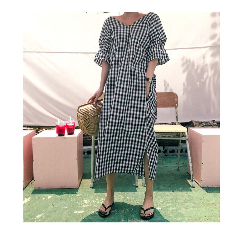 大人カジュアルなギンガムチェック柄のロング丈ワンピースです♪