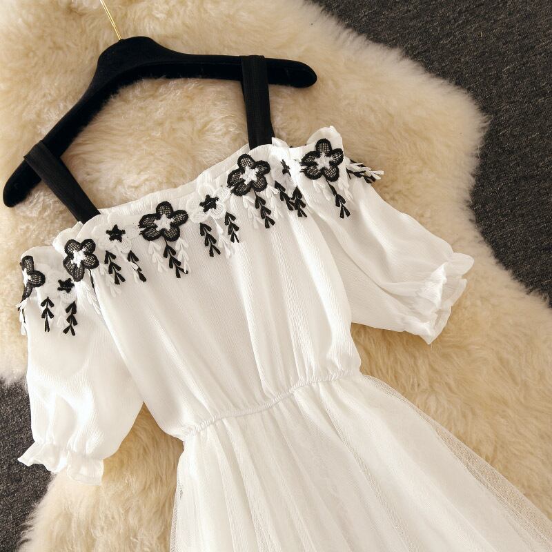 ワンピース オフショルダー ノースリーブ ドレス レース ホワイト ブラック 花