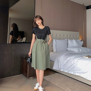 ワンピース 半袖 膝丈 フレア ドッキングデザイン 大人カジュアル デート お出かけ 春 夏