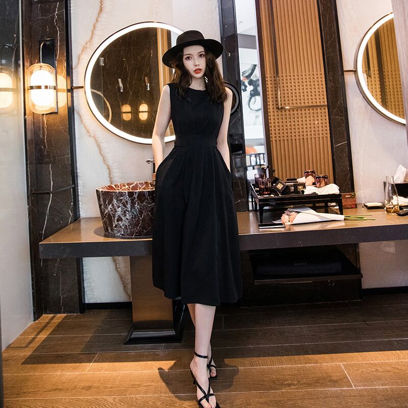ワンピース ノースリーブ ミモレ丈 フレア くびれデザイン シンプル 無地 大人カジュアル お出かけ