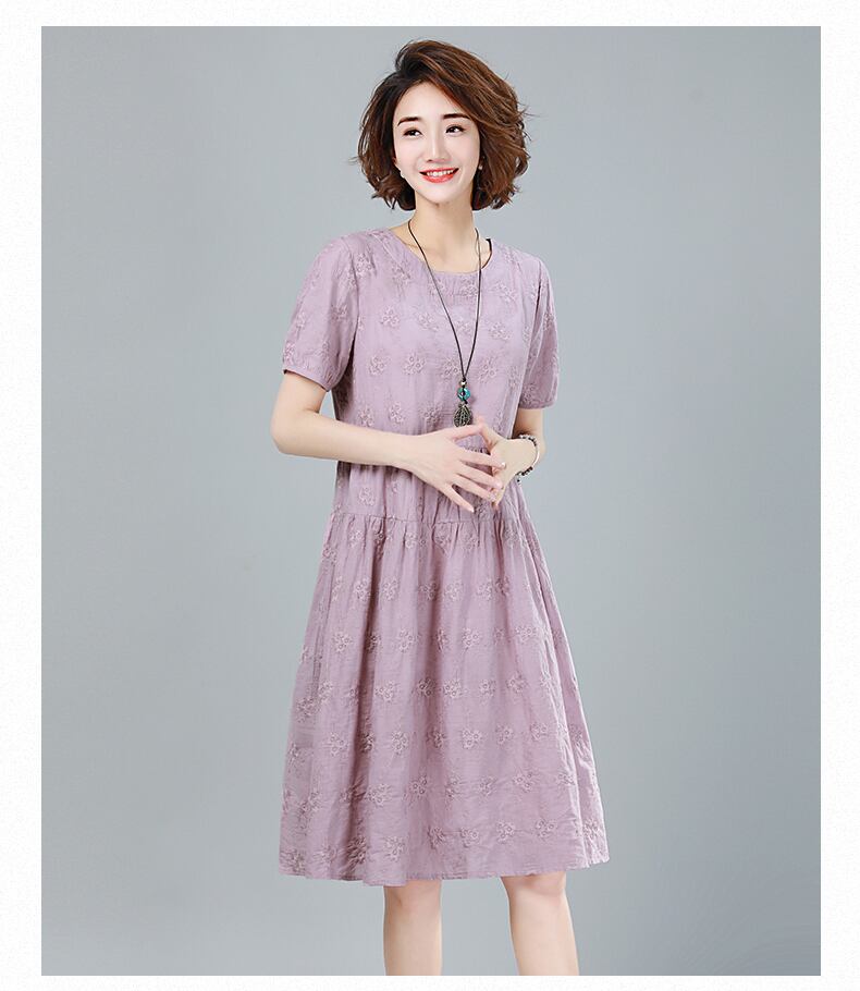 ワンピース 半袖 膝丈 夏 刺繍 ティアード Aライン 花 パープル グリーン ピンク オレンジ