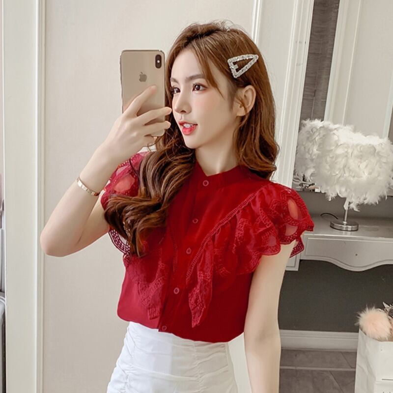 ブラウス ノースリーブ ノーカラー レース シンプル 無地 きれいめ 大人可愛い デーとお出かけ