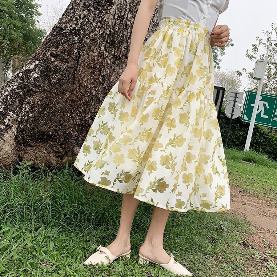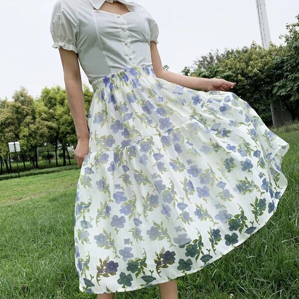 スカート 膝丈フレア 花柄 きれいめ 上品 エレガント ハイウエスト デート お出かけ 春 夏