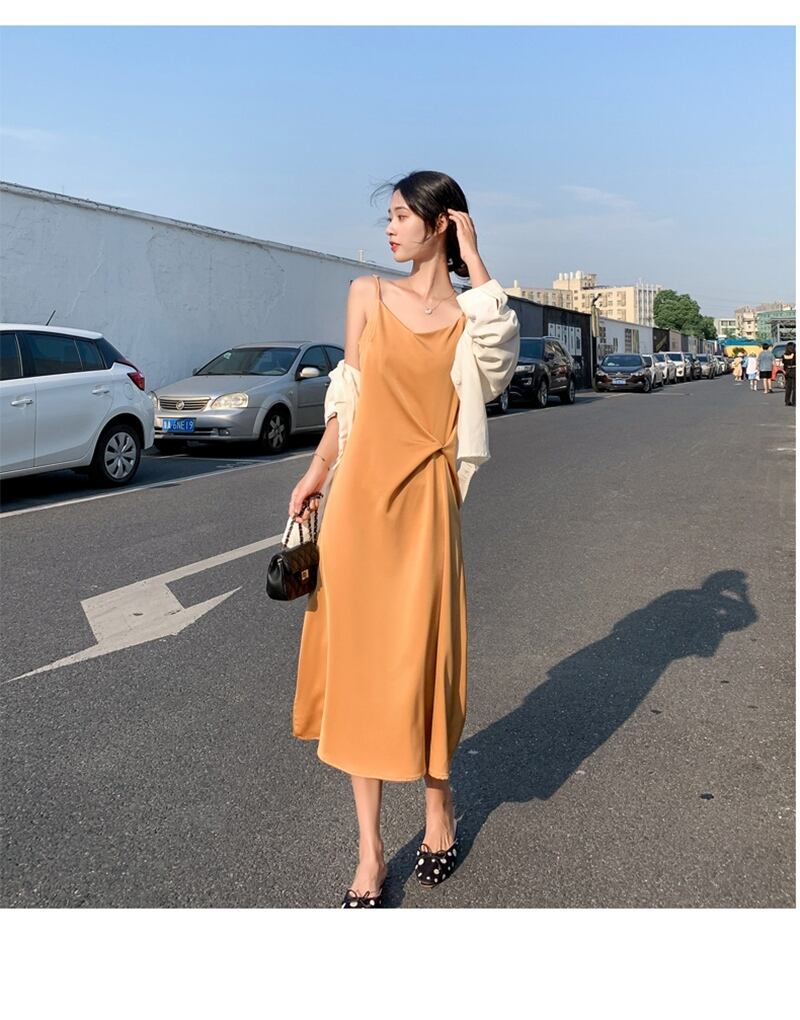 ワンピース キャミソールワンピース ノースリーブ 膝丈 フレア ウエストギャザー シンプル きれいめ