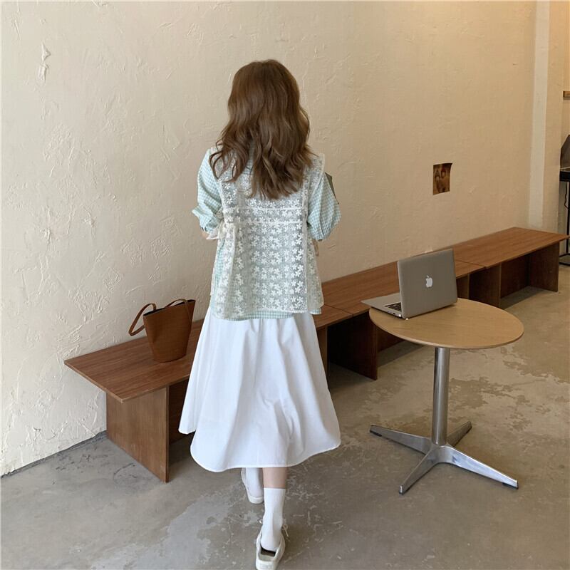 ブラウス シャツ 半袖 チェック柄 スカート 膝丈 フレア シンプル 無地 大人カジュアル デート