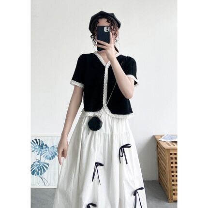 カーディガン トップス レース ブラック 半袖 ミニ丈