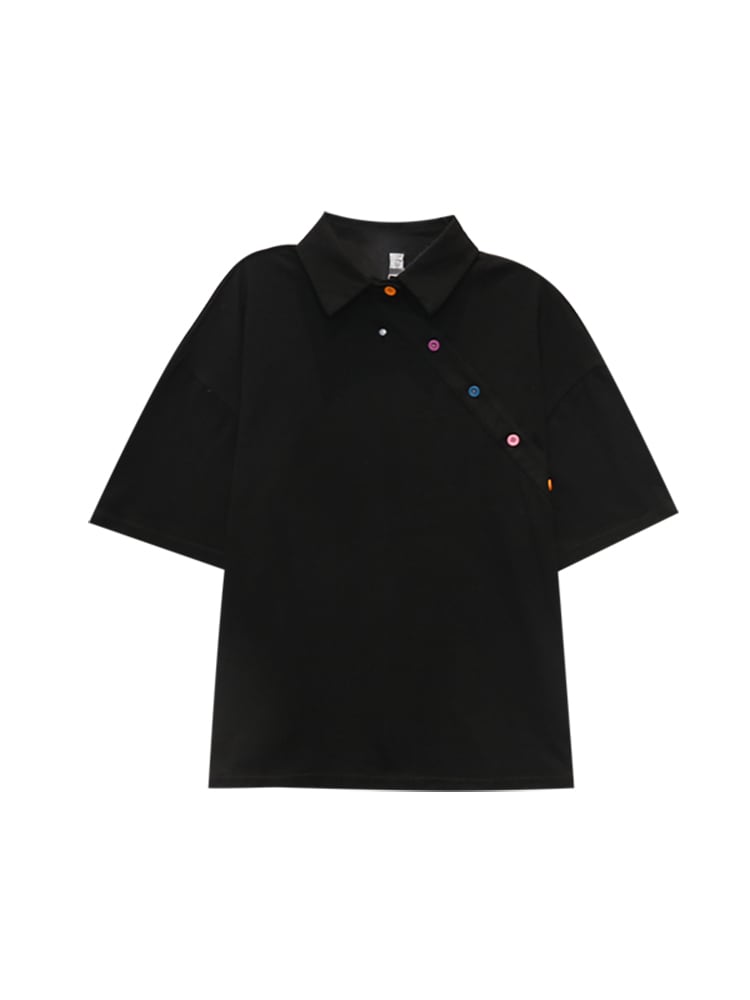 シャツ 半袖 カラフルボタン斜めボタン シンプル 無地 カジュアル ゆったり お出かけ 春 夏