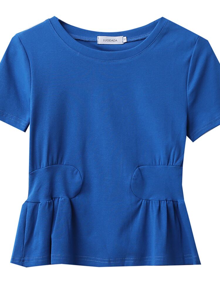カットソー 半袖 Tシャツ フレア ペプラム くびれデザイン シンプル 無地 大人カジュアル 夏