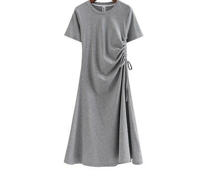 横にギャザーがついていて少し大人っぽくおしゃれなカラーTシャツワンピ♪