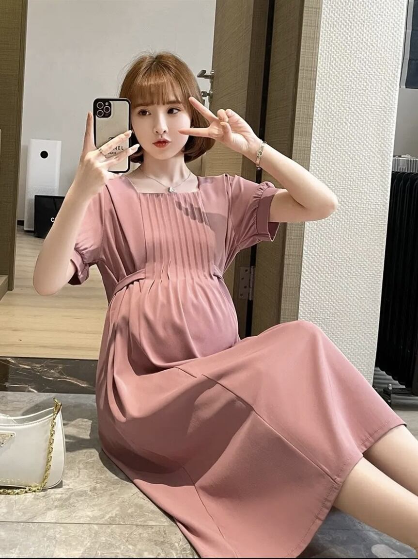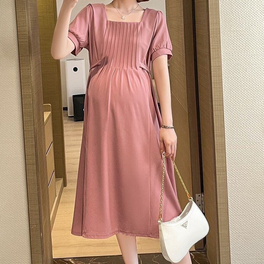 ワンピース 半袖 ひざ丈 フレア くびれデザイン スクエアネック シンプル 無地 きれいめ 大人可愛い
