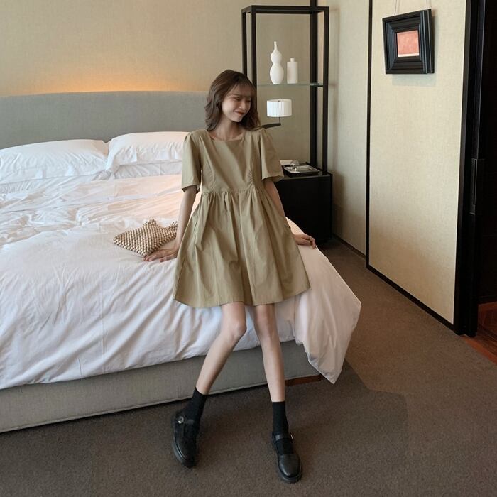 ワンピース 半袖 ミニ丈 フレア シンプル 無地 大人カジュアル ゆったり デート お出かけ 夏