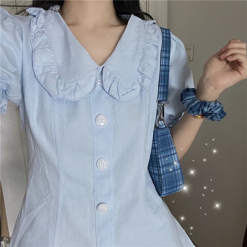 ワンピース 半袖 ミニ丈 フレア フリル くびれデザイン きれいめ 無地 大人可愛い デート 夏