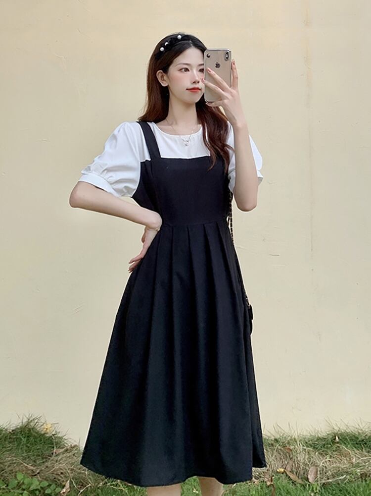 ワンピース ジャンパースカート ノースリーブ フレア シンプル 無地 大人カジュアル 夏