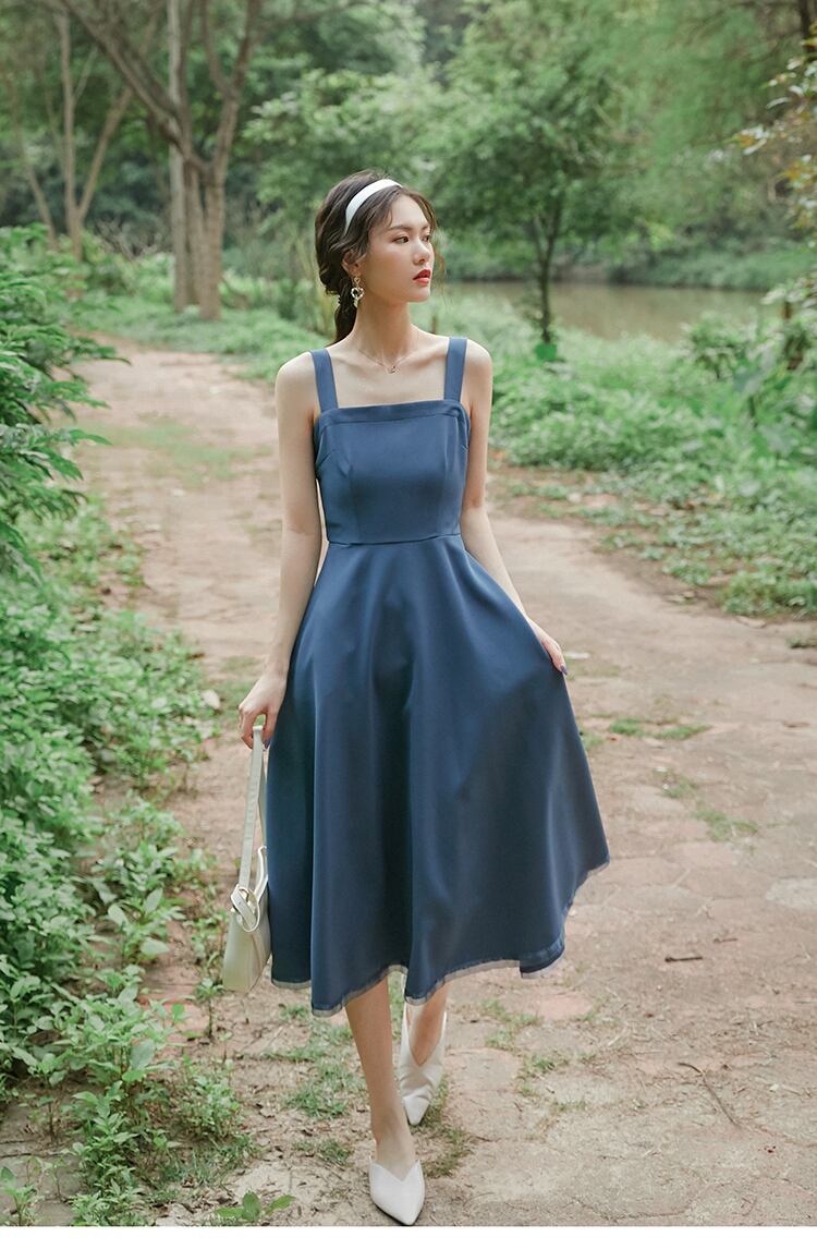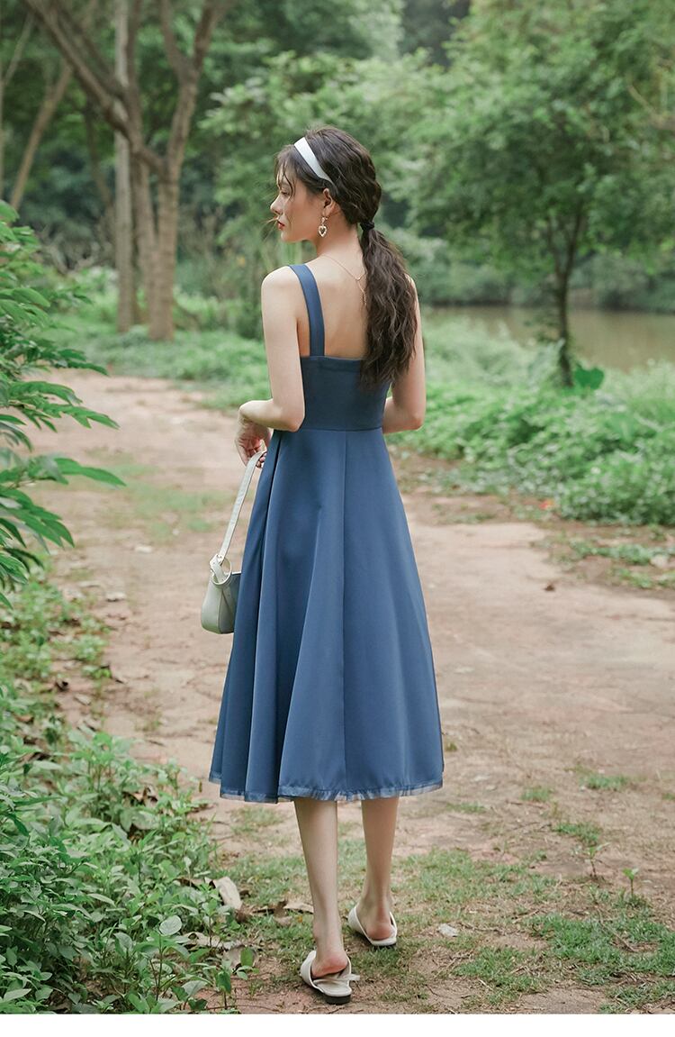 ワンピース ジャンパースカート ノースリーブ ひざ丈 フレア くびれデザイン シンプル 無地 大人カジュアル