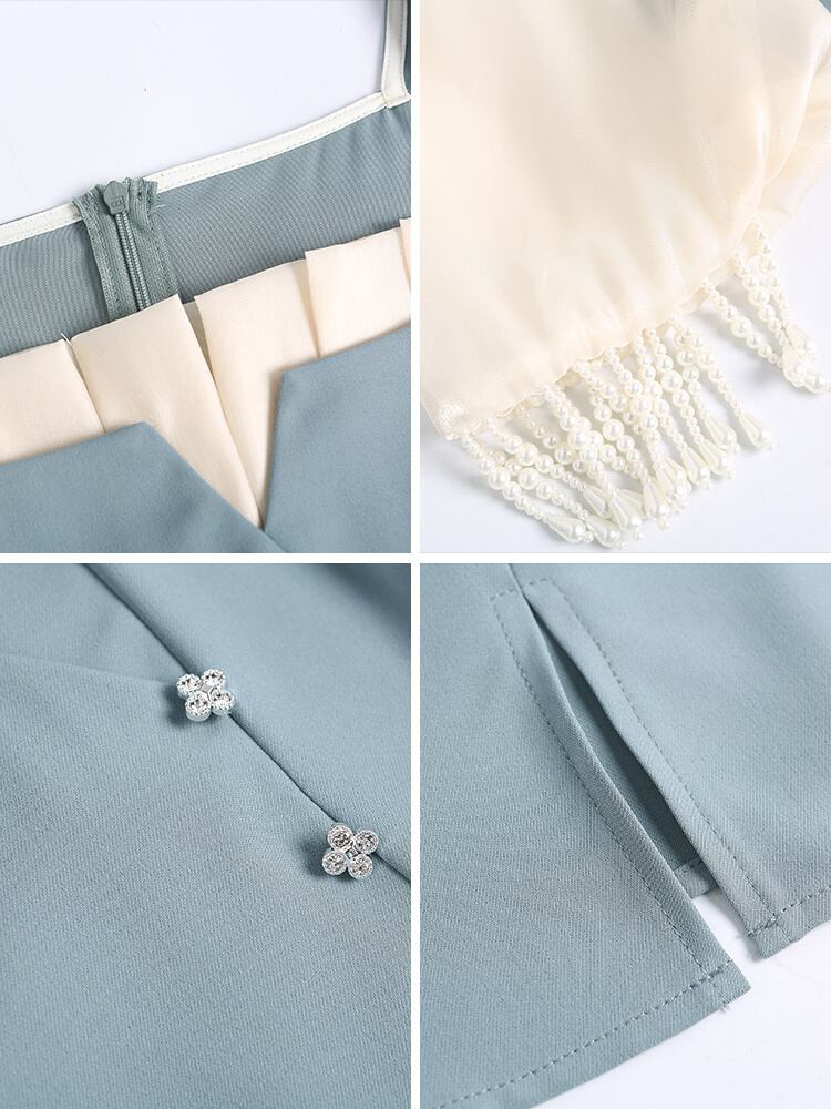 ワンピース 半袖 ミニ丈 ひざ丈 スリット フリンジ 重ね着風 きれいめ 大人可愛い デート お出かけ