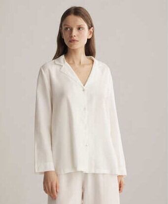 パジャマ セットアップ 長袖 ホワイト 夏 春 秋 Vネック 七分丈パンツ