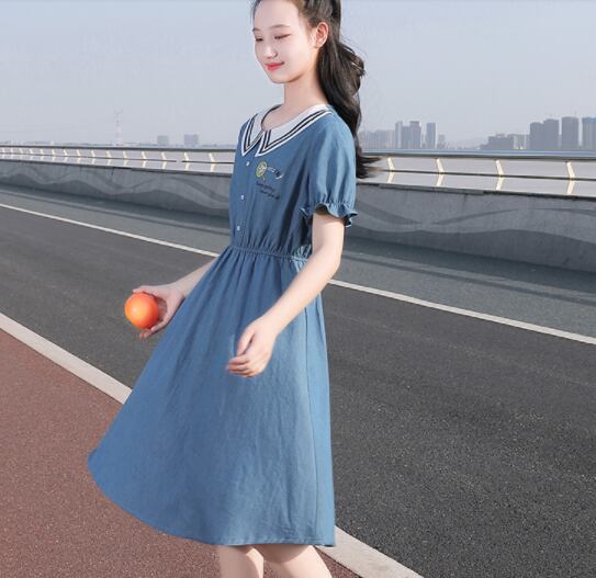 カジュアルなデニム素材の膝丈ワンピースです♪