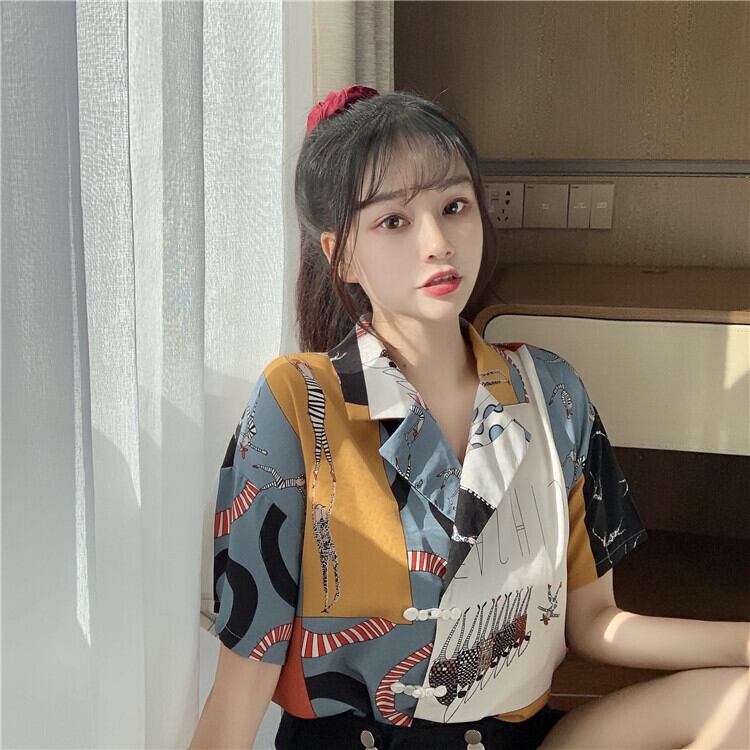 シャツ ブラウス 半袖 総柄 ショート丈 羽織 ゆったり 大人カジュアル デート お出かけ 夏
