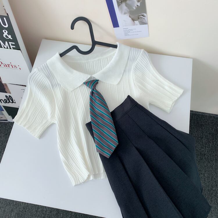 カットソー 半袖 リブ 薄手 シンプル 無地 大人カジュアル ネクタイ付き お出かけ 夏