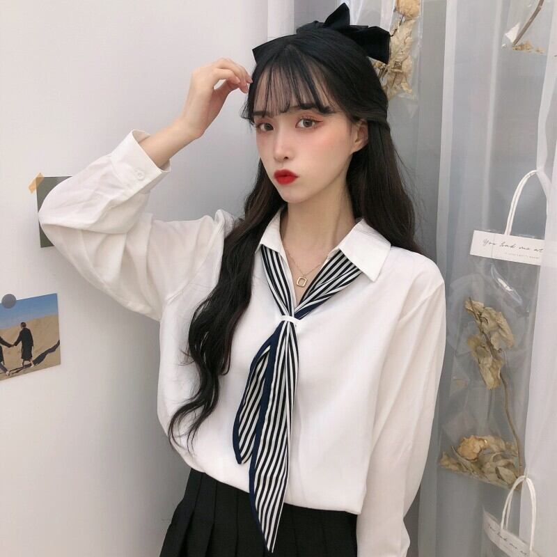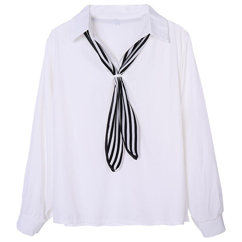 シャツブラウス 長袖 シンプル 無地 大人カジュアル スカーフ付き デート お出かけ