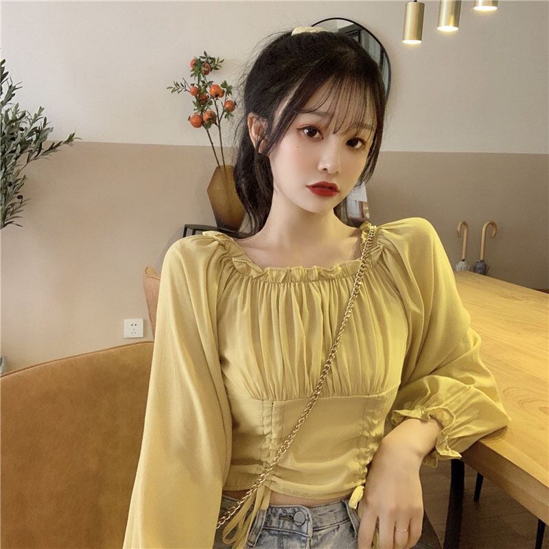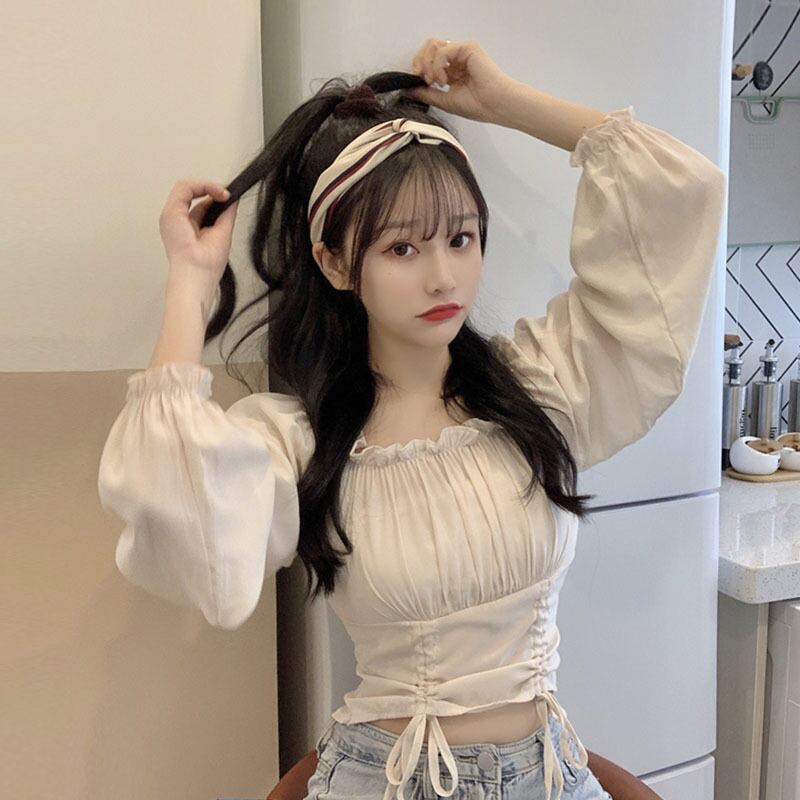 ブラウス 長袖 ショート丈 パフスリーブ フリル サイドギャザー 大人可愛い デート お出かけ