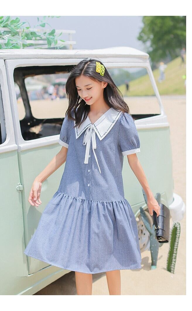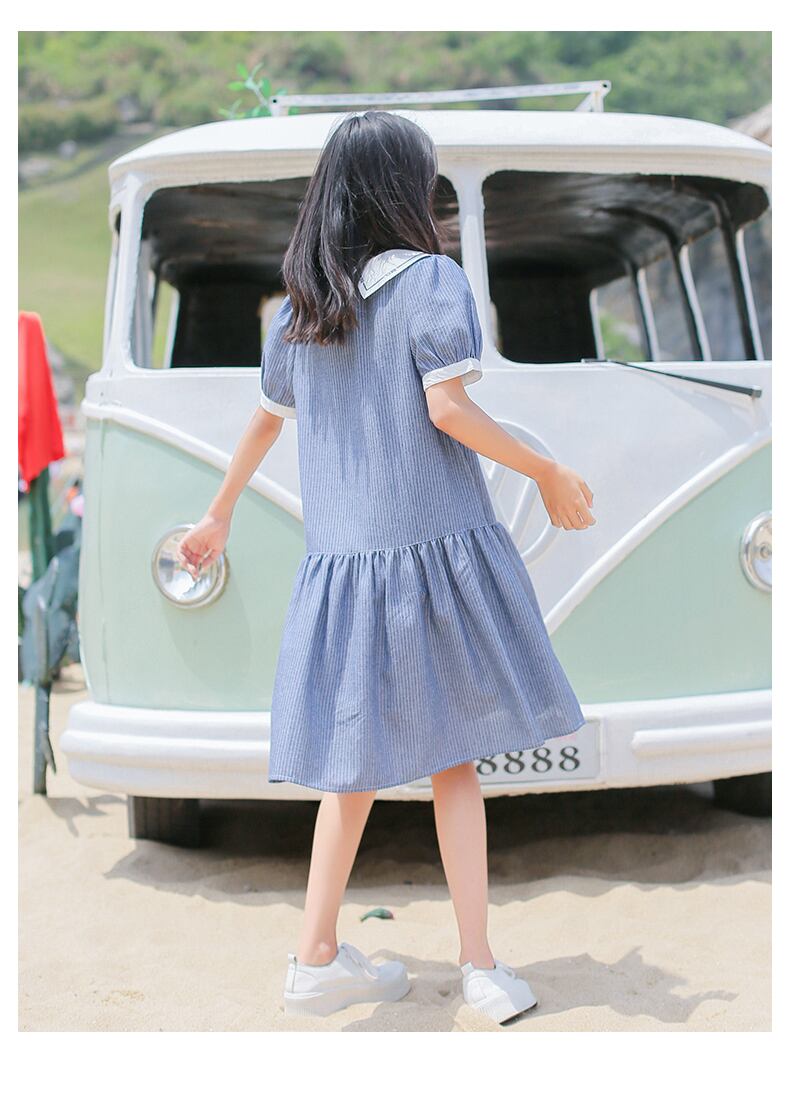 ワンピース 半袖 ブルー 夏 膝丈 海 ストライプ