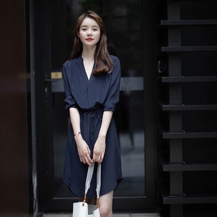 ワンピース シャツワンピース 長袖ミニ丈 シンプル 無地 大人カジュアル きれいめ お出かけ