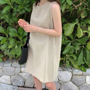 ワンピース ノースリーブ ミニ丈 麻 シンプル 無地 大人カジュアル きれいめ お出かけ 夏