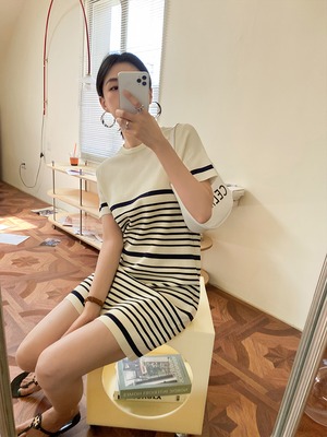 大人カジュアルなボーダー柄デザインのミニ丈ワンピースです♪