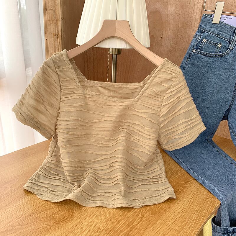 カットソー ブラウス 半袖 スクエアネック ショート丈 シンプル 無地 大人カジュアル 薄手 夏