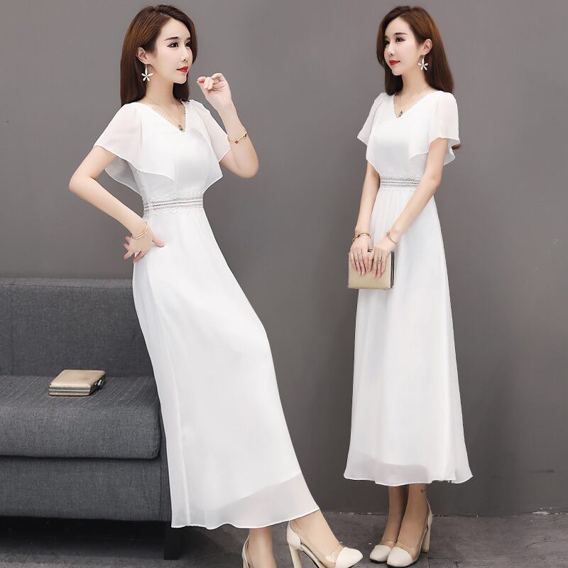 ワンピース シフォンワンピース 半袖 ロング丈 ミモレ丈 タイト シンプル 無地 きれいめ 上品