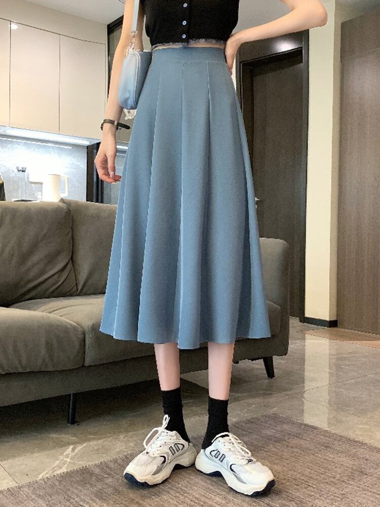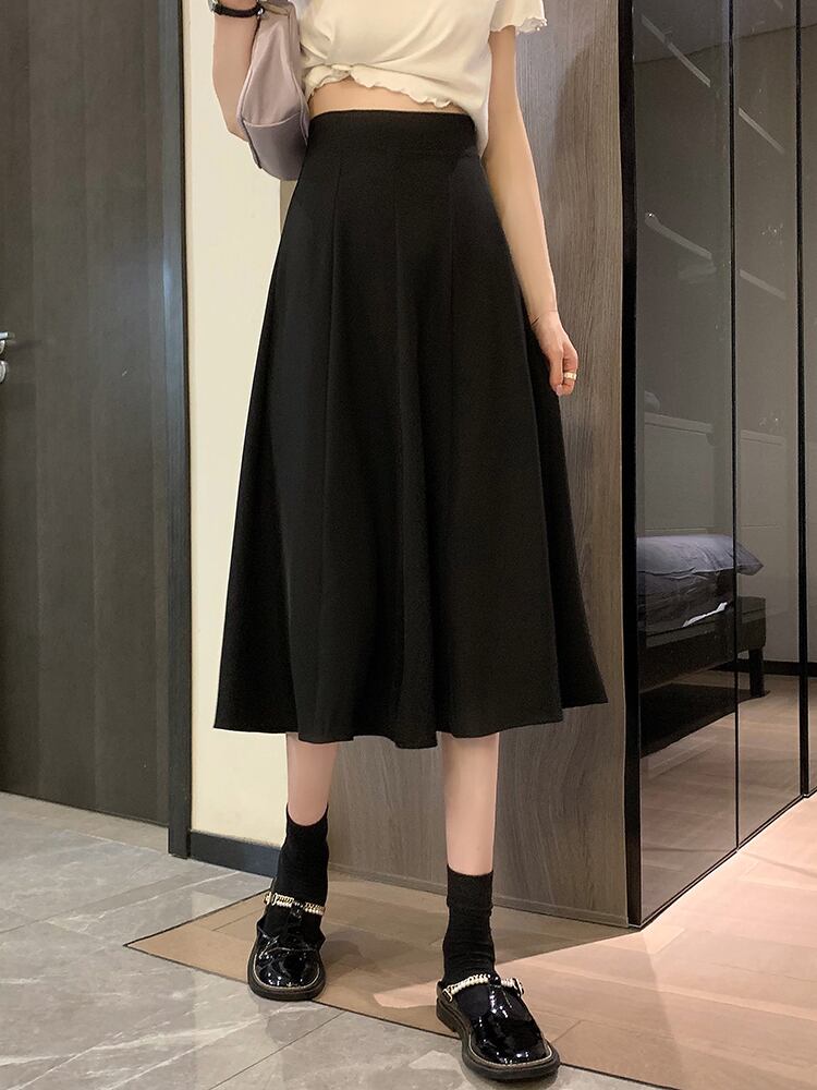 スカート ミモレ丈 フレア ハイウエスト シンプル 無地 大人カジュアル きれいめ 上品 デート