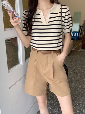 セットアップ ツーピース 半袖 カットソー ボーダー柄 パンツ ショートパンツ 大人カジュアル 夏