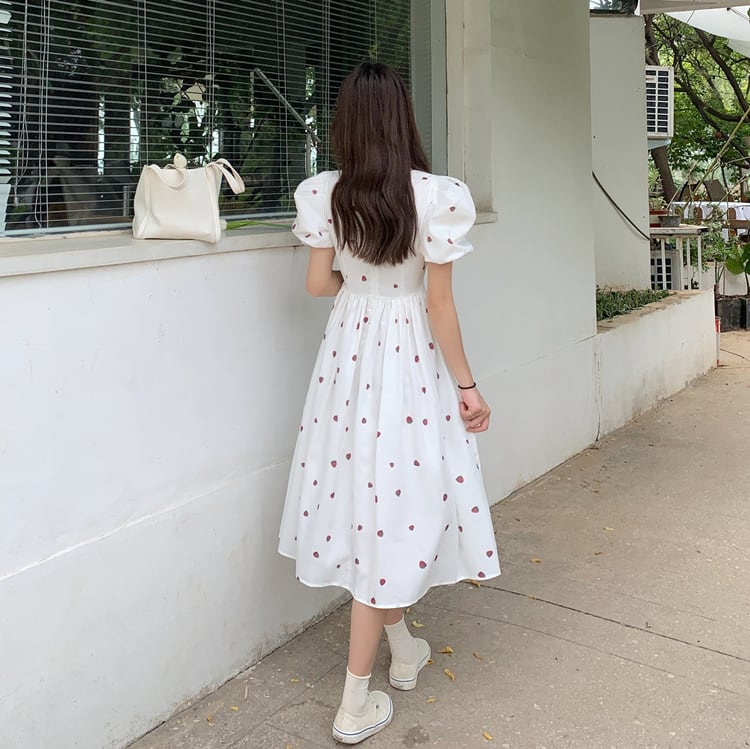 大人可愛いハート柄デザインの膝丈ワンピースです。