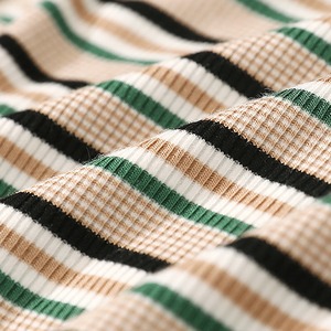 カジュアルボーダー柄デザインの半袖カットソーとスカートのセットアップです。