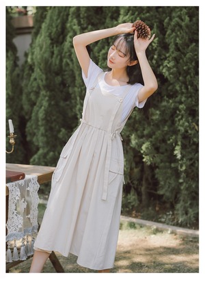 ワンピース ノースリーブ ジャンパースカート 膝丈 くびれデザイン シンプル 無地 大人カジュアル