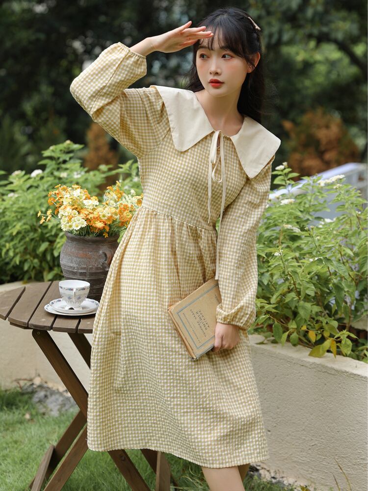 ワンピース 長袖 膝丈 フレア 襟付き チェック柄 ベスト ニットベスト 大人カジュアル デート
