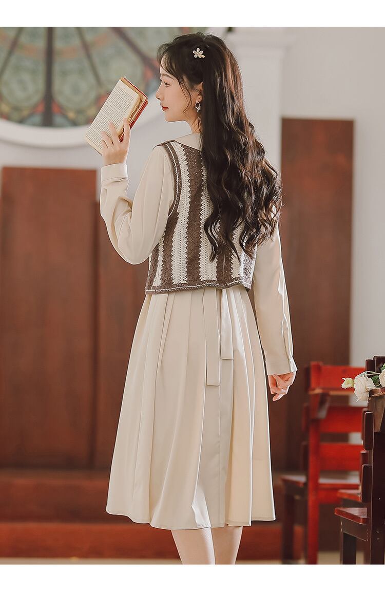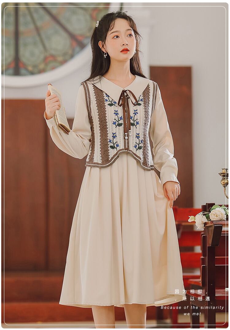 刺繍ベスト付きの長袖ワンピースです。