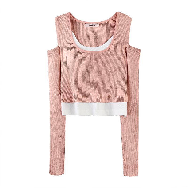 カットソー トップス 長袖 重ね着風 肩出しデザイン シンプル 無地 大人カジュアル お出かけ