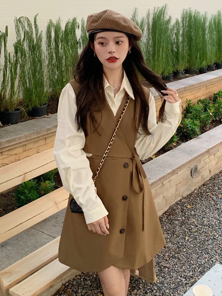 シャツとワンピースが一枚になったフェイクワンピ♪