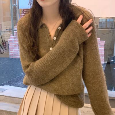 ニット 長袖 襟付きフロントボタン 薄手 シンプル 無地 大人カジュアル ゆったり お出かけ