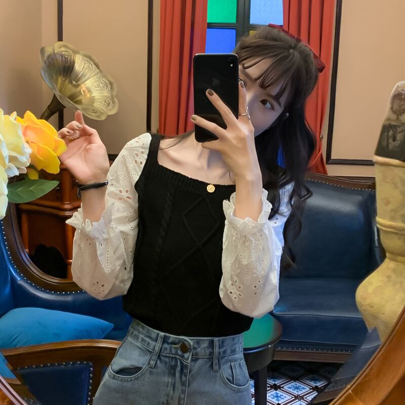 トップス ニット 長袖 かわいい ホワイト ブラック